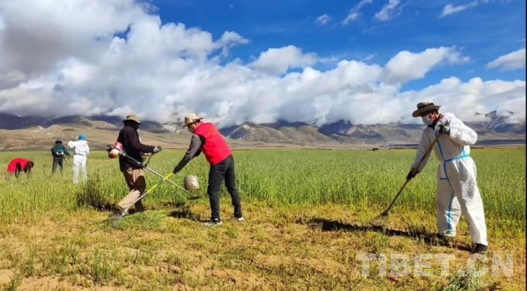 圖為國(guó)家牧草產(chǎn)業(yè)技術(shù)體系拉薩綜合試驗(yàn)站曲尼帕基地燕麥種子秋收搶收工作(海拔3760米)