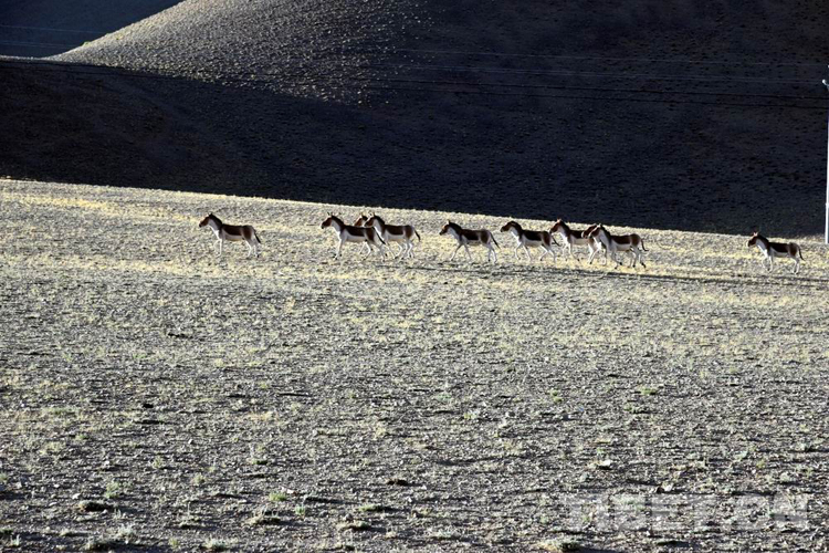 在從獅泉河去往改則縣城的路上,我們看到了一群藏野驢在羌塘草原上無憂無慮地奔跑,它們身姿矯健,棕黃色的背部和白色的腹部在朝霞的映襯下顯得格外美麗,那種獨(dú)屬于原野的又颯又帥的感染力令大家不由自主地感嘆:太壯觀了!