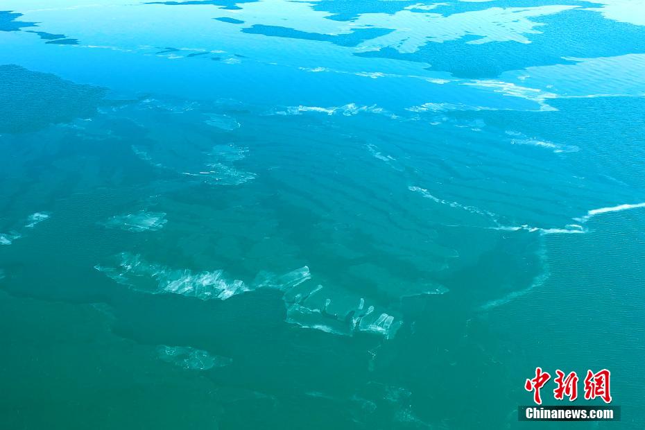 近日,素有“高原藍寶石”之稱的青海湖開始進入冰封期。青海湖水體周邊的零星結(jié)冰,青海湖西部邊緣、北部湖岸區(qū)、鳥島、青海湖斷崖等地出現(xiàn)成片結(jié)冰區(qū)。航拍畫面中可以看到湖心范圍尚有大面積未結(jié)冰區(qū)域。青海湖是中國最大的內(nèi)陸咸水湖。冬日里的青海湖,寧靜而內(nèi)斂。千里冰封,宛如童話世界。封凍的湖面如同破碎的“玉帶”,形成獨特的景觀。張世偉 攝
