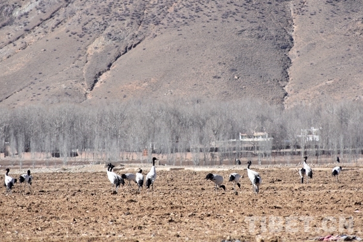 中國(guó)西藏網(wǎng)訊 地處雅魯藏布江中游河谷地帶的西藏自治區(qū)拉薩市林周縣,被稱為拉薩“糧倉(cāng)”。每年的冬季,林周縣虎頭山水庫(kù)因兩面夾山,周邊有大片的良田,成為黑頸鶴覓食、夜棲的佳地。