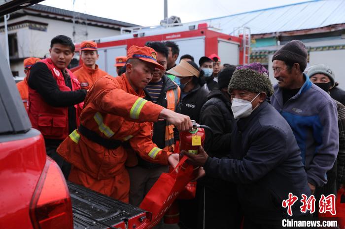 該中隊為每家每戶配發(fā)干粉滅火器。 西繞拉翁 攝