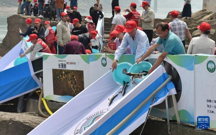 長(zhǎng)江上游珍稀特有魚類國(guó)家級(jí)自然保護(hù)區(qū)云南段增殖放流活動(dòng)在云南省水富市舉行(2021年4月23日攝)。新華社發(fā)