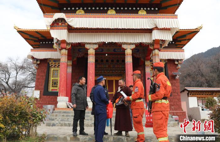 在寺廟宣傳防火注意事項(xiàng)?!∥骼@拉翁 攝