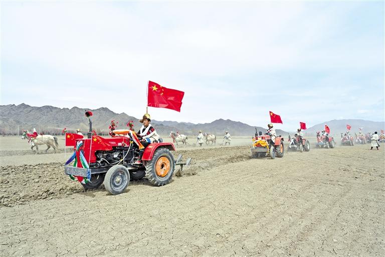 3月16日,日喀則市年楚河兩岸的農(nóng)區(qū)迎來(lái)一年一度的開(kāi)耕儀式,耕地機(jī)、旋耕機(jī)的轟鳴聲打破了高原田野的寧?kù)o。
