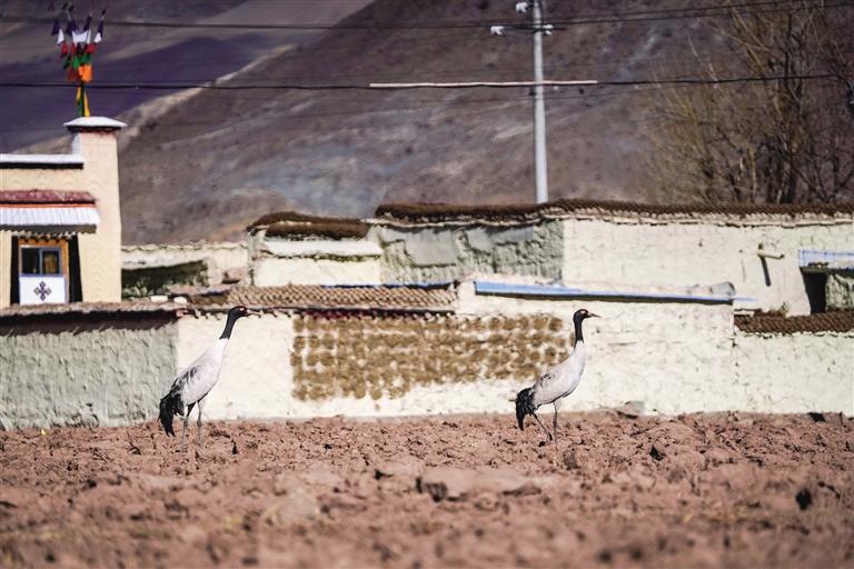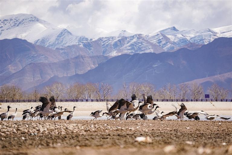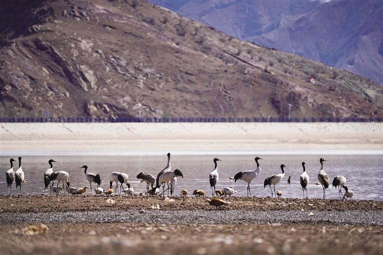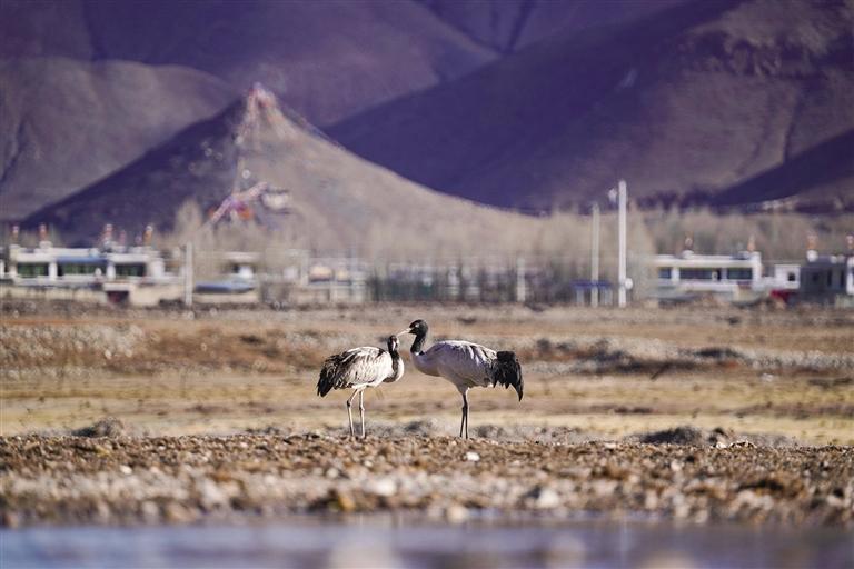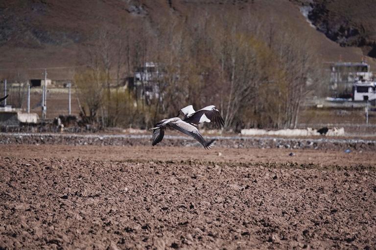 黑頸鶴是國家一級(jí)保護(hù)動(dòng)物,在藏語中稱為“沖沖”。主要棲息在海拔2500米至5000米的高原、草甸、沼澤地帶。拉薩北部的林周縣平均海拔約4200米,是黑頸鶴的主要越冬地之一。最近這段時(shí)間,對(duì)拉薩市林周縣野保員們來說,一邊要忙自家的農(nóng)活,一邊還要巡查候鳥情況?!耙呀?jīng)有一小部分飛走了,估計(jì)再過半個(gè)月都會(huì)陸續(xù)飛走?!?月23日上午,野保員旦增告訴記者,在虎頭山水庫和卡孜水庫越冬的候鳥有一部分已經(jīng)飛走了。野保員口中的“飛走”便是遷徙,遷徙是候鳥的本能,一年一年,跟隨時(shí)間的召喚,完成兩次遷徙:繁殖和越冬。