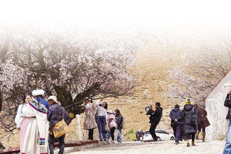 帕邦喀距離拉薩市區(qū)不到一小時車程,每年桃花盛開的時候,帕邦喀便成為人們賞桃花、踏春游的熱門景點。昔日里略顯安靜的帕邦喀此時也因賞花的人們熱鬧起來。帕邦喀桃花盛開的美景也在微信朋友圈、短視頻平臺等社交媒體上刷屏,吸引著大批市民游客拍照打卡。