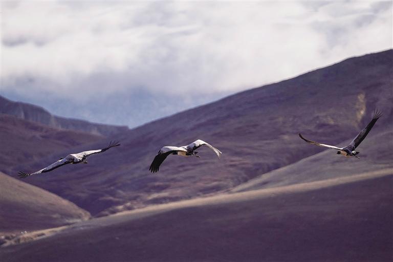 近日,那曲市比如縣茶曲鄉(xiāng)因為數(shù)十只黑頸鶴的出現(xiàn),再現(xiàn)了“人鶴共舞”“鶴丁興旺”的人與自然和諧相處美好畫面。