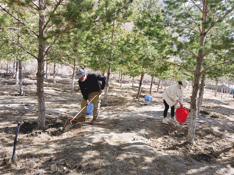 “每年的1月、2月,我們就要開始造林項目規(guī)劃設計工作,通常是先到拉薩市5縣3區(qū)實地調研,了解當年的氣候和自然條件,尋找適合種樹的地方。3月,植樹造林工作全面開始,我們要每天前往拉薩南北山各個片區(qū),實地指導技術人員及農牧民植樹造林,教授他們栽植樹木、修剪樹根(枝)、把握樹坑深度、澆灌、后期管養(yǎng)護等技術?!睍x美朗杰說。