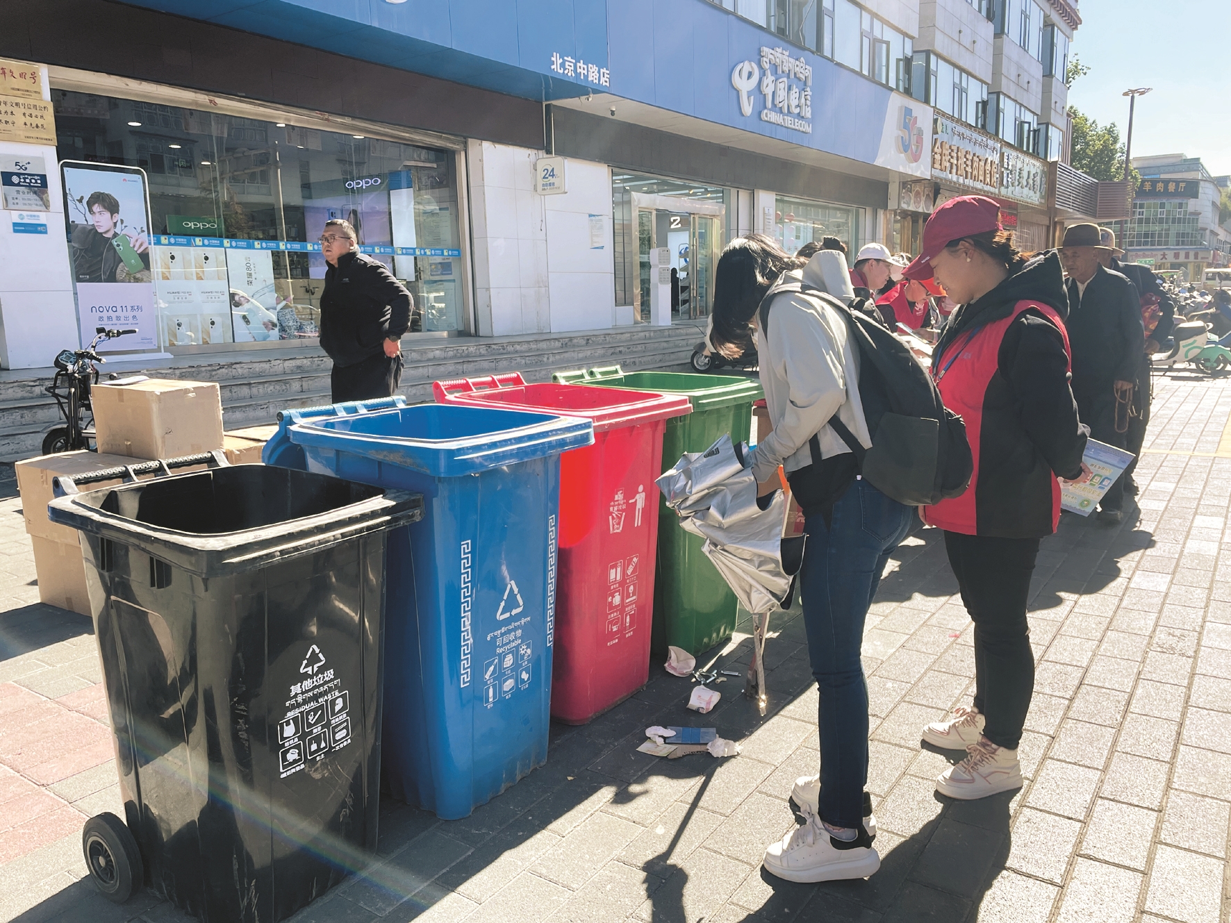 活動(dòng)中,兩家單位宣傳小分隊(duì)來(lái)到人流量較大的北京中路,向過(guò)往市民群眾宣傳垃圾分類知識(shí),引導(dǎo)廣大市民群眾積極參與垃圾分類工作,攜手共建綠色美好家園。