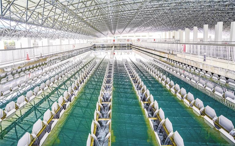 申雅薈介紹,目前,納金水廠引進的設備大部分為進口設備,且核心設備在全世界排名較前,整個工藝流程全部實現(xiàn)自動化操作,一旦監(jiān)控系統(tǒng)自動報警出現(xiàn)問題后,工作人員會第一時間到現(xiàn)場進行排查。為了確保水質(zhì)安全,納金水廠專門設立了水質(zhì)檢測中心,在這里可以進行取水和水質(zhì)分析,水質(zhì)合格且安全后才能送入市政管網(wǎng)。