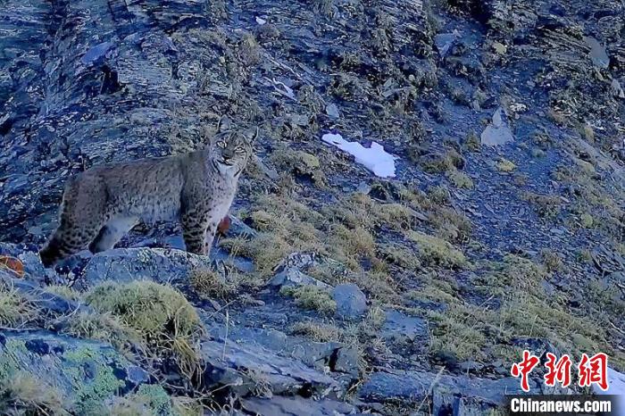 紅外線相機(jī)拍到的國家二級(jí)保護(hù)動(dòng)物猞猁?!⌒慢埧h林業(yè)和草原局供圖