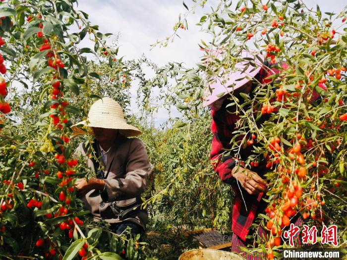 圖為務(wù)工人員采摘枸杞。(資料圖)孫睿 攝