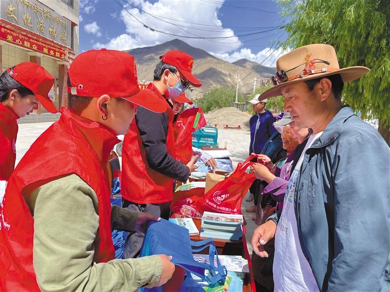 山南市新時(shí)代文明實(shí)踐志愿者在開展環(huán)保宣傳活動(dòng)