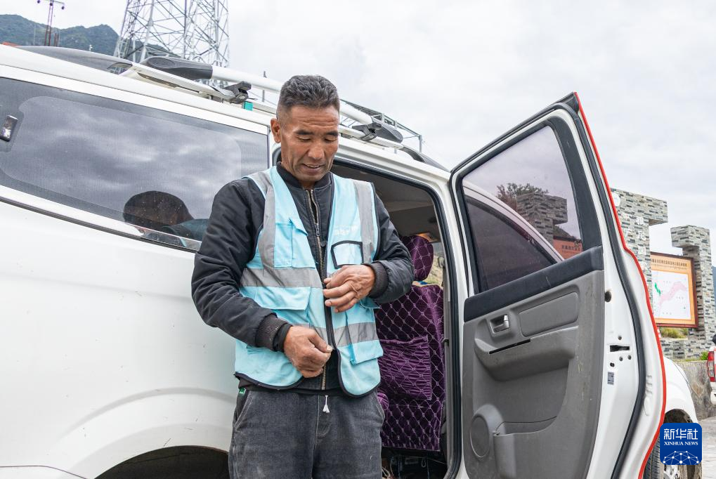 雅尼國(guó)家濕地公園管護(hù)員普布多杰在穿工作馬甲,準(zhǔn)備開始巡護(hù)工作(9月8日攝)。新華社發(fā)(丁增尼達(dá) 攝)