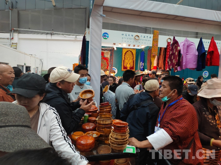 圖為第五屆中國(guó)西藏旅游文化國(guó)際博覽會(huì)展銷活動(dòng)現(xiàn)場(chǎng)市民在選購(gòu)商品 攝影:次旦拉姆