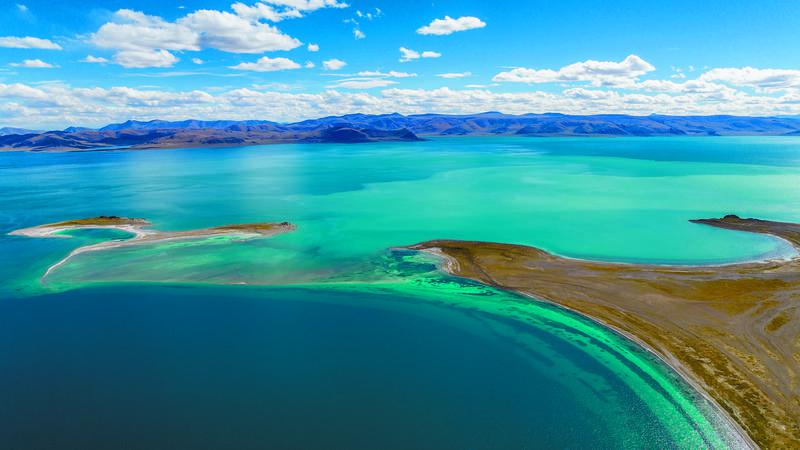 阿里地區(qū)東部擁有眾多礦物質(zhì)含量豐富的咸水湖,這些色彩豐富的湖泊與多彩的大地相互映襯,形成了瑰麗奇幻的景觀。