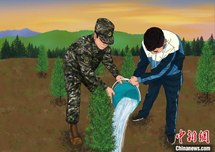 青海武警手繪“環(huán)?!焙?bào) 呼吁保護(hù)高原生態(tài)