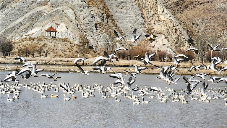 近年來,西藏不斷加強(qiáng)野生動(dòng)物保護(hù)力度,全面提升自然保護(hù)區(qū)基礎(chǔ)設(shè)施、管理水平,健全完善野生動(dòng)物保護(hù)法律法規(guī),野生動(dòng)物保護(hù)工作取得顯著成效。隨著各族干部群眾保護(hù)意識(shí)不斷增強(qiáng),斑頭雁、赤麻鴨、紅嘴鷗等大量保護(hù)動(dòng)物都會(huì)飛到西藏過冬,它們聚集在西藏的各個(gè)湖畔,時(shí)而凌空盤旋、時(shí)而悠閑踱步,鳥鳴聲此起彼伏,構(gòu)成了冬日里一道美麗的風(fēng)景。