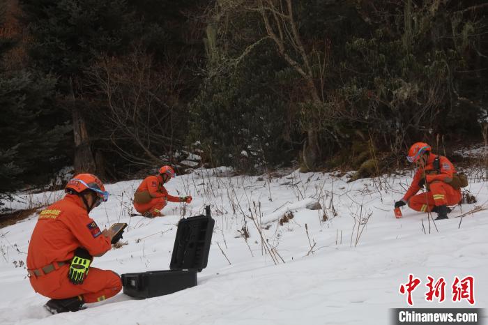 圖為森林消防隊(duì)員正在使用儀器進(jìn)行搜索。袁永斌 攝