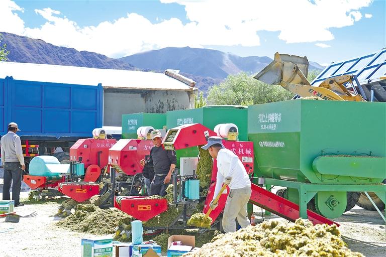 圖為日喀則市薩迦縣飼草料加工現(xiàn)場(chǎng)。記者 次仁平措 攝