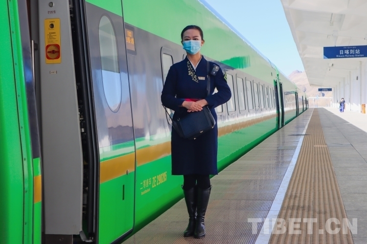 在拉日鐵路上的每一列高原動(dòng)車(chē)組列車(chē)中,1名列車(chē)長(zhǎng),3名乘務(wù)員,要負(fù)責(zé)9節(jié)車(chē)廂,755名乘客的乘務(wù)工作。從上車(chē)查驗(yàn)車(chē)票、行李安全擺放、列車(chē)禁煙宣傳,到途中協(xié)助乘客補(bǔ)票、提醒乘客到站信息等,列車(chē)乘務(wù)員們幾乎沒(méi)有時(shí)間休息。