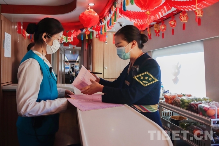 “由于春運(yùn)期間旅客人數(shù)的增多,為滿足高原群眾出行需要,拉日鐵路加開(kāi)了多趟臨客列車(chē),我今天所值乘的C921次就是其中之一,列車(chē)到達(dá)日喀則后會(huì)立即變更為C922次返回拉薩?!绷熊?chē)長(zhǎng)周晶今天將值乘4趟列車(chē),在拉薩和日喀則間往返2個(gè)來(lái)回,行程共計(jì)1000余公里,從早上8點(diǎn)上車(chē)準(zhǔn)備到20:50返回拉薩休息,周晶一天的工作有將近12個(gè)小時(shí)都是在列車(chē)上度過(guò)的,一日三餐都在列車(chē)上解決,一天下來(lái)光在列車(chē)上就要走將近2萬(wàn)步。