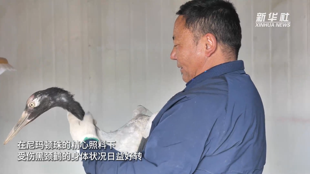 黑頸鶴是一種大型涉禽,依賴廣闊的天空和豐饒的濕地生存。盡管人工環(huán)境能提供一定的庇護,但無法與自然界的多樣性和復雜性相比。在尼瑪頓珠的精心照料下,受傷黑頸鶴的身體狀況日益改善。隨著遷徙季節(jié)的臨近,尼瑪頓珠決定將其放回自然棲息地。