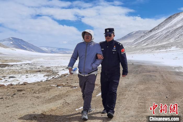 圖為4月16日,西藏阿里移民管理警察救援誤入無人區(qū)游客。鄧鴻 攝