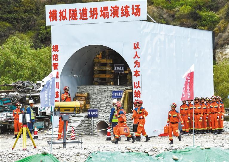 本次演練模擬林芝市巴宜區(qū)發(fā)生5.9級地震,震源深度10公里。地震發(fā)生后,林芝市抗震救災(zāi)指揮部高度重視,第一時間啟動應(yīng)急響應(yīng),立即聯(lián)系巴宜區(qū)、米林市應(yīng)急管理局,指示其核查轄區(qū)內(nèi)的鄉(xiāng)(鎮(zhèn))、村(居)等受災(zāi)情況。林芝市人民政府第一時間啟動抗震救災(zāi)Ⅲ級應(yīng)急響應(yīng),開展災(zāi)情核查和救援行動。共投入應(yīng)急、地震、公安、衛(wèi)健、消防、森消以及西藏鐵路公司、中國水電十四局、安能集團(tuán)、國家隧道二鐵西藏隊等救援力量約450人,動用直升機(jī)1架、無人機(jī)8架、搜救犬5只和專業(yè)救援車輛、救援裝備(器材)等。