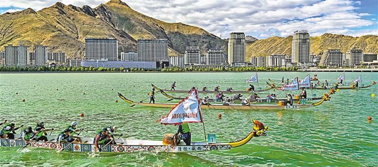 鑼鼓喧天歌盛世,龍舟競渡展雄風(fēng)。6月9日,隨著裁判一聲令下,2024年西藏自治區(qū)端午節(jié)牛皮船(龍舟)賽在拉薩市金珠東路濱河公園水域開劃。這是在西藏舉辦的首個(gè)城市龍舟賽,也是中國海拔最高的龍舟賽。