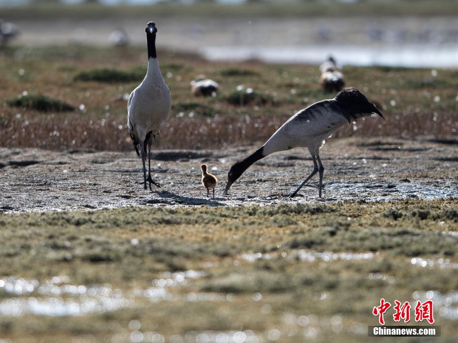 6月13日,西藏那曲市申扎縣一只黑頸鶴幼崽在父母的引導下,開始了破殼出生首日的覓食之旅。在覓食過程中,這只黑頸鶴幼崽展現(xiàn)出了驚人的生命力和強烈的學習欲望。黑頸鶴是國家一級保護動物,也是世界上唯一一種生長、繁殖在高原的鶴類。圖為黑頸鶴幼崽在父母的引導下在濕地里棲息、覓食。