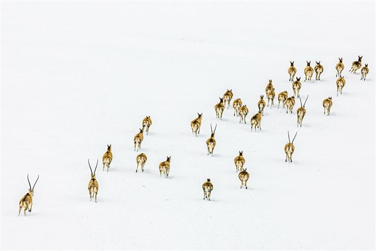 青藏高原的蒼茫大地間,一群群母藏羚羊排成長隊,向著“產(chǎn)房”走去,這是被譽為“全球最壯觀的三大有蹄類動物大遷徙之一”的藏羚羊遷徙。