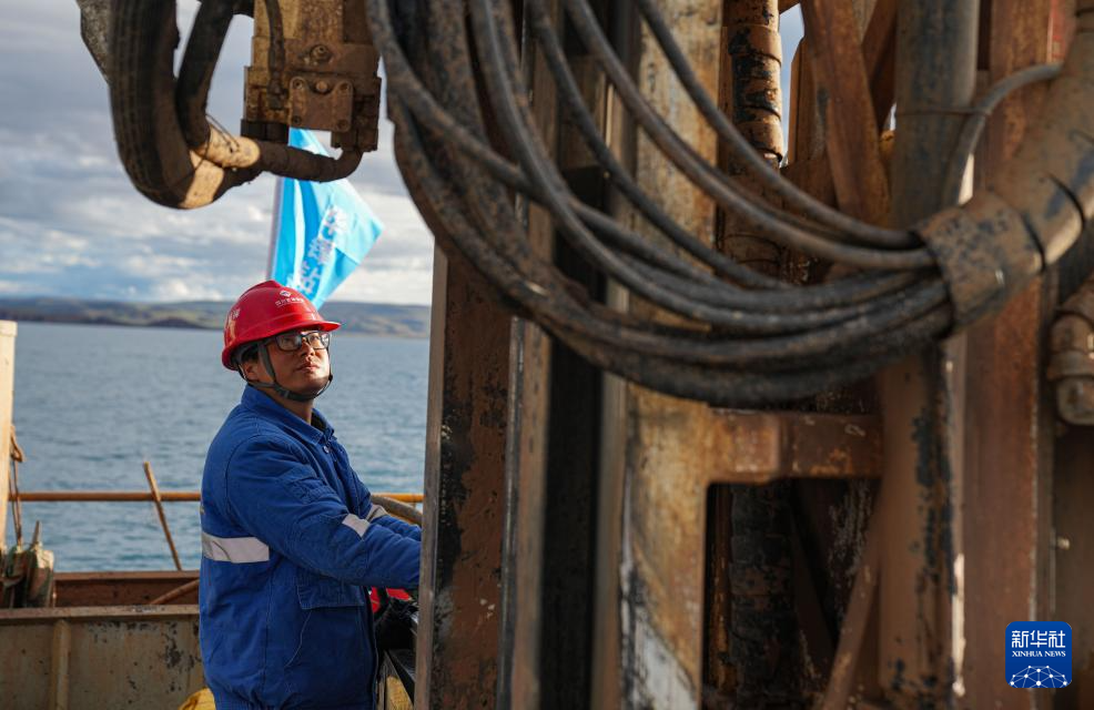 7月11日,鉆探人員提起內(nèi)管,準(zhǔn)備提取湖泊巖芯。新華社記者 晉美多吉 攝