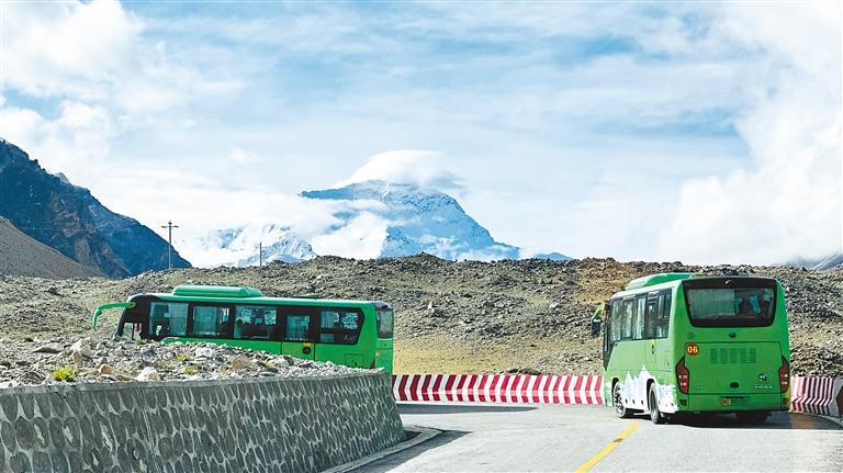 近年來,綠色低碳出行逐漸成為前往珠峰游客首選的方式。西藏日喀則市定日縣北坡大本營生態(tài)旅游汽車運輸有限公司自 2019 年起,便開始運營清潔能源環(huán)??蛙?,實現(xiàn)了珠峰低碳旅游和綠色旅游,有力保護了珠峰獨有的生態(tài)環(huán)境。
