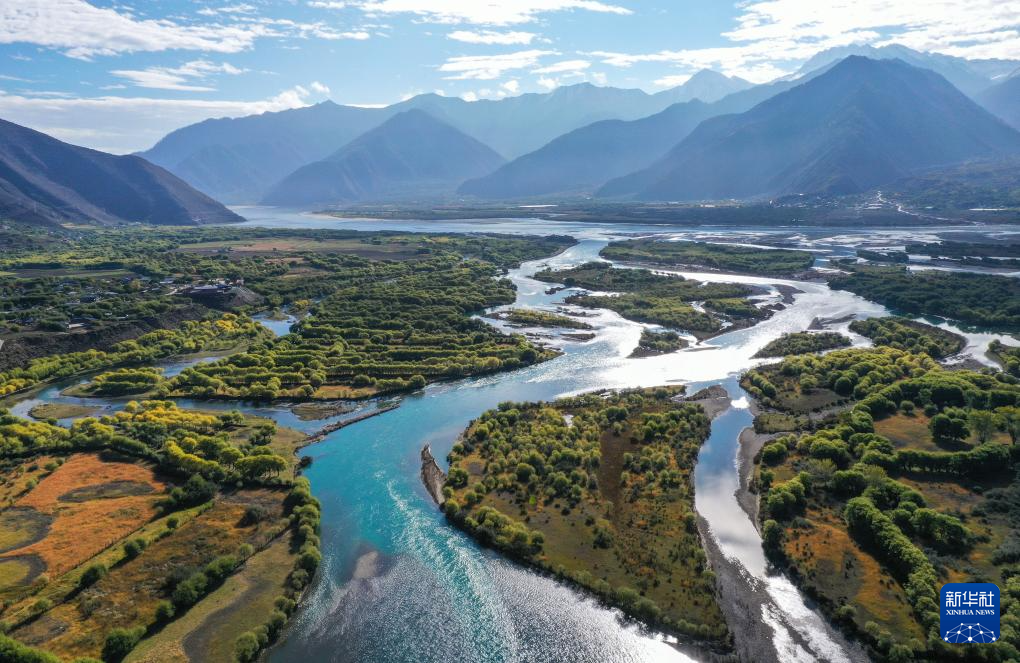 這是在林芝雅尼國(guó)家濕地公園尼洋河畔拍攝的生態(tài)監(jiān)測(cè)系統(tǒng)(10月24日攝,無(wú)人機(jī)照片)。新華社記者 劉天宇 攝