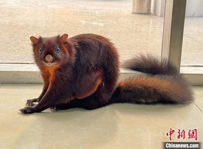圖為民警救助的棕鼯鼠。鄭爽 攝