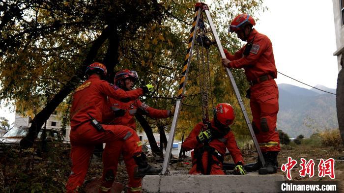 圖為地震救援實(shí)戰(zhàn)化演練中開(kāi)展豎井救援。西繞拉翁 攝