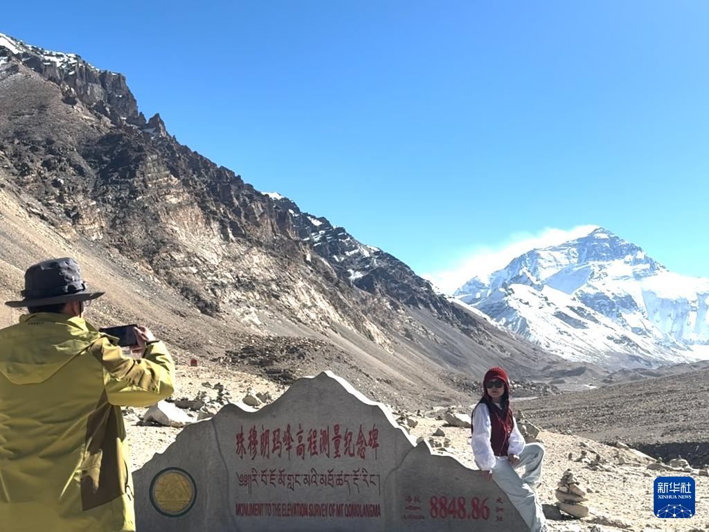 11月20日,游客在珠峰景區(qū)拍照留影。新華社記者 盧丹陽(yáng) 攝
