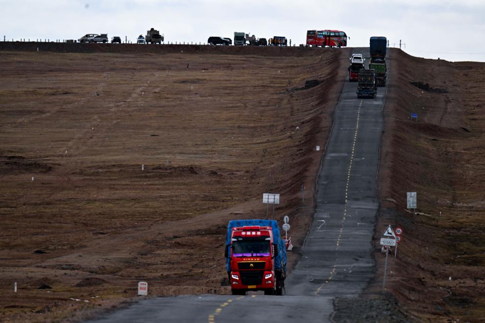 2024年5月25日,車輛行駛在青藏公路上。新華社記者 張龍 攝