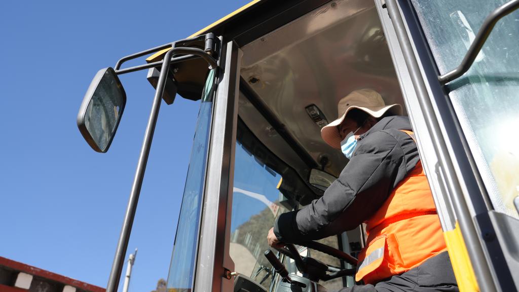 斯朗曲培正在駕駛裝載機(jī)(12月7日攝)。蔣夢辰 攝