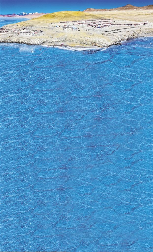 活動在浪卡子縣打隆鎮(zhèn)推瓦村舉辦。普莫雍錯冬季封凍后,會形成如夢如幻的幽藍(lán)冰面,因此被贊譽(yù)為“中國貝加爾湖”。每年2月前后,當(dāng)湖面完全冰封,推瓦村村民便會集結(jié)羊群,趕著它們踏上冰面,前往湖心島過冬,這一延續(xù)千年的冰上趕羊傳統(tǒng),承載著深厚的歷史文化底蘊(yùn)。