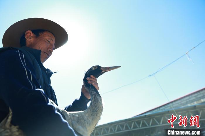 4月25日,這只康復(fù)的黑頸鶴在尼瑪次仁的注視下重返藍(lán)天。目送它遠(yuǎn)去的身影,尼瑪次仁既欣慰又不舍。