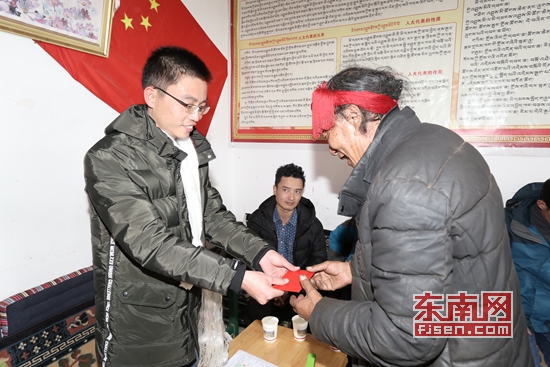 在資助會(huì)上,林謀東代表福州市第九批援藏工作隊(duì)與洛松玉珍簽訂了資助協(xié)議并發(fā)放資助金。直到此時(shí),洛松玉珍和母親才如釋重負(fù),露出了久違的微笑。