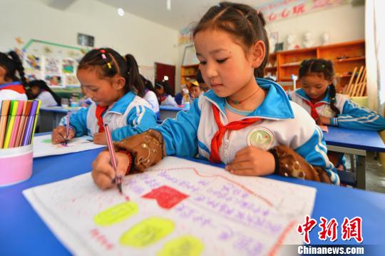 9月22日,西藏拉薩尼木縣一小學學生在上美術課?!〗w波 攝