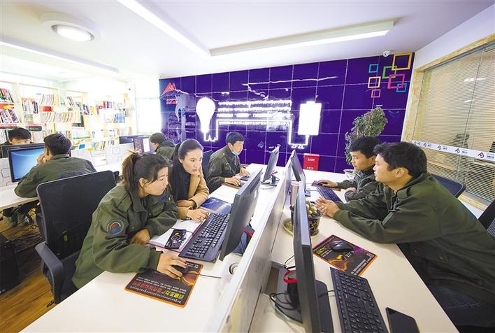 圖為在該公司就業(yè)的高校畢業(yè)生正在設(shè)計(jì)廣告文案。記者 格桑吉美 攝
