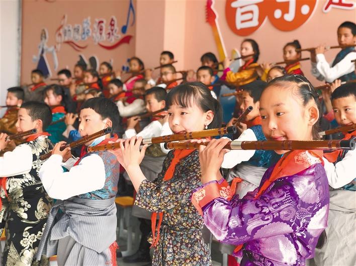 圖為孩子們?cè)谖鞑刈灾螀^(qū)青少年宮學(xué)習(xí)樂器。記者 央金 攝