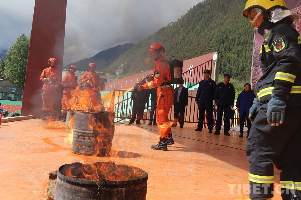 西藏林芝市森林消防支隊開展防災(zāi)減災(zāi)綜合演練進校園活動
