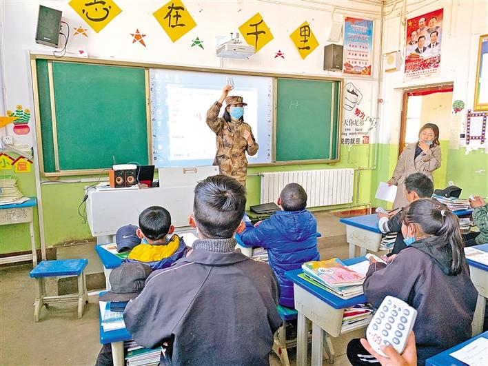 圖為汪瑞為駐地師生講解心理測(cè)驗(yàn)方法及規(guī)則。(圖片由汪瑞提供)