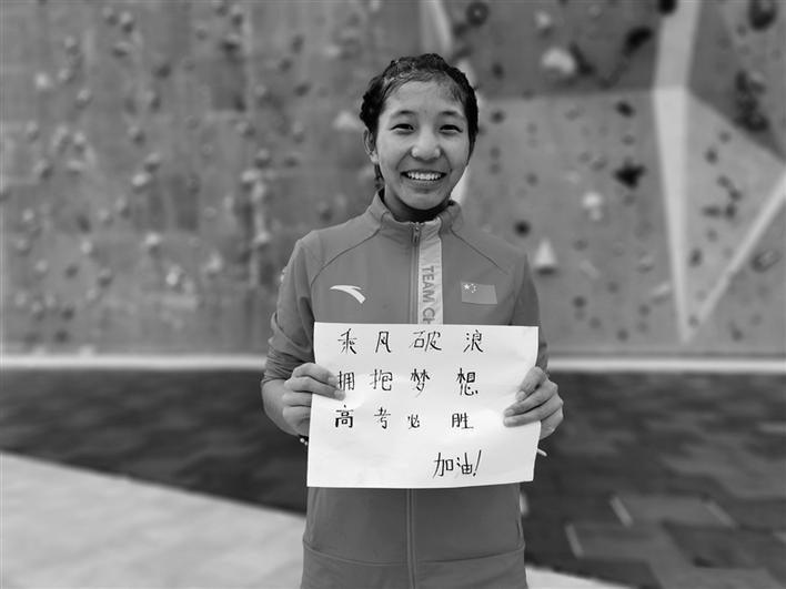 “乘風(fēng)破浪,擁抱夢(mèng)想,高考必勝?!蔽鞑鼗╆?duì)的隊(duì)員們也送來(lái)了祝福。