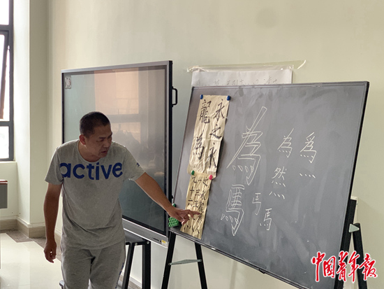蔡偉給學生上書法課。王景爍攝